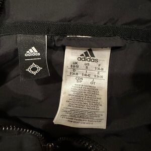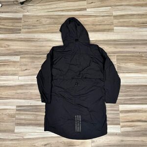 Stylish adidas trench coat. Features a hood and front zipper. Perfect for versatile wear.