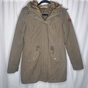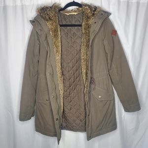 Hollister Olive Green Heritage Parka With Faux Fur Trim Size XS