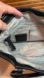 INTERIOR: tan crosshatch lining. Couple ink spots pictured. Sidewalls have 2 zip pockets and 2 slip pockets. Key finder. Brighton patch. No smells, clean, no rips.