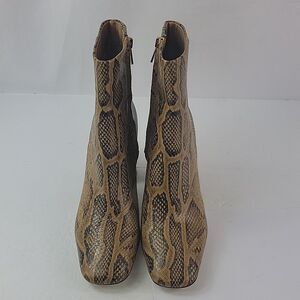 Rendered in snake embossed leather, these ankle boots flaunt a flared block heel adorned with logo emblem.