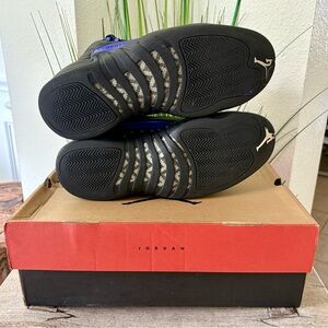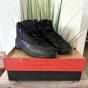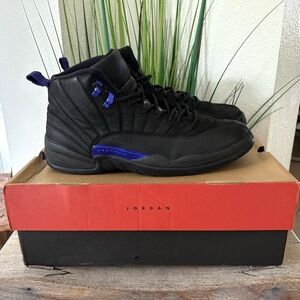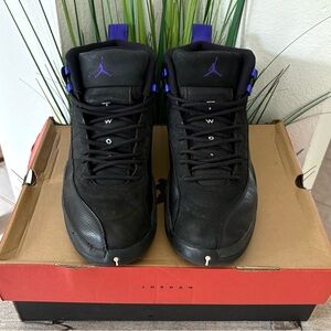 Jordan 12 XII Black Dark Concord Sneakers.