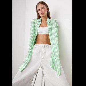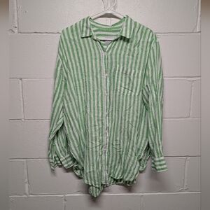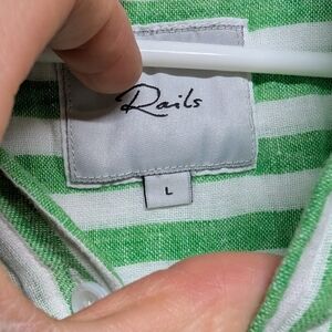 Rails Jaylin Cayman Green White Stripe Linen Blend Women's Button Shirt Large