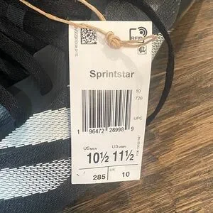 Stylish athletic shoes with iconic stripes. Perfect for running. Lightweight and supportive. Spikes not included. No flaws. Smoke free home.