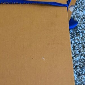 Stylish Louis Vuitton box in vibrant orange. Accented with a royal blue ribbon. Ideal for gifting. Used Condition. See pics. Box has a few blemishes