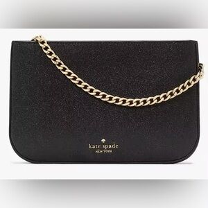 Kate Spade Black Glimmer Pochette With Gold Chain New