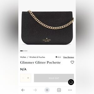 This Kate Spade New York glimmer pochette in black with a gold chain handle is sold out on the Kate Spade website. This bag is perfect for a formal event such as a wedding or gala. New in sealed package. See photos for measurements and dimensions.