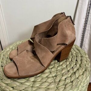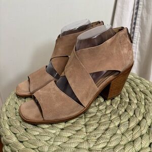 Eileen Fisher Ann Tan Nubuck Soft Crisscross Strap Block Heel Sandals