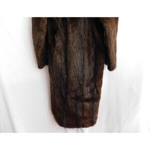 This is a stunning full-length coat from the Evans Collection, made of real beaver fur in a rich brown color. The long sleeves and regular fit make it a perfect addition to any woman's wardrobe, and the satin lining adds an extra touch of luxury.