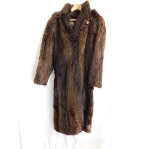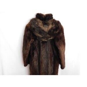 Real Beaver Fur Full Length Coat w/ Hood Evans Collection *See Measurements*