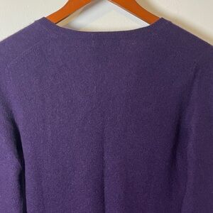 Lands' End 100% Cashmere Purple Classic V-Neck Quiet Luxury Preppy Sweater Sz XS