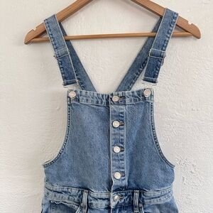 Bib to waist 9.8"; Waist 15.3" across; Hips 18" across; Bib to crotch 21.2"; Inseam 26".