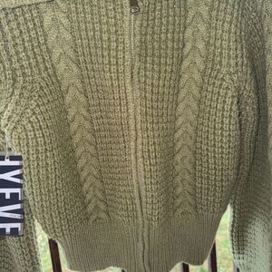 HYFVE Women’s Olive Zip Front cable knit Sweater Cardigan Sz Small NWT