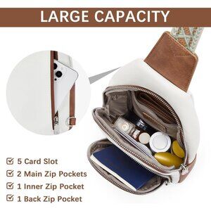 Large Capacity, Stay Organized - This leather sling bag has 4 Zip pockets. The well-organized space accommodates your wallet, phone, sunscreen, cosmetics, keys, cards, and other necessary items. The five card slots provide convenient storage for your ID cards, credit cards, and transit cards, making them easily accessible