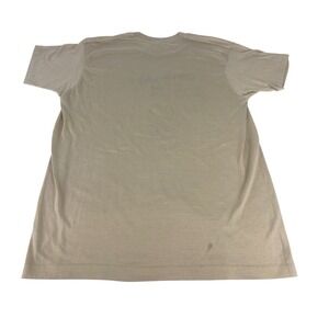 Mr. Peanut 1986 Cotillion Goes Nuts graphic t-shirt in tan. Features a fun graphic of a peanut character in a top hat and cane, with the text "Cotillion Goes Nuts! '86". Perfect for casual wear or as a unique retro piece. Single Stitch.