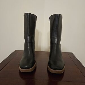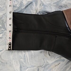 Sleek black boots with a stylish wooden heel. Perfect for elevating any outfit.
