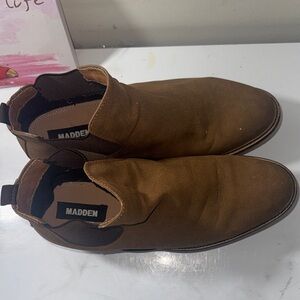 Upgrade your wardrobe with these taupe chelsea boots by Steve Madden. Sleek design and versatile style. These are in good condition.