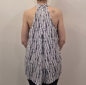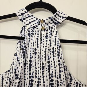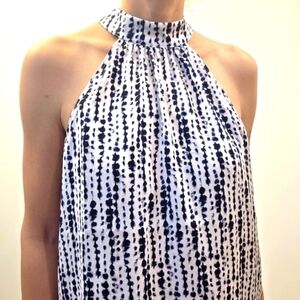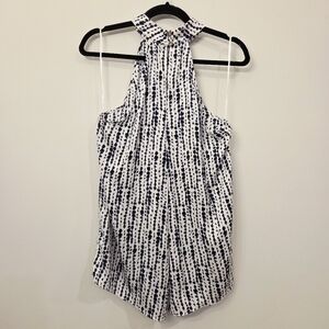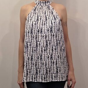 Halston Halter Neck Navy And White Sleeveless Top Size Small
