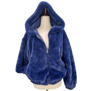 FRENCH CONNECTION sz 2 XS Eclipse Blue Faux Fur Hoodie Full Zip Jacket b133