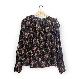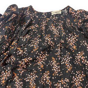 Ulla Johnson Medine Floral Balloon Sleeve Blouse, Size 2, Jet/Black