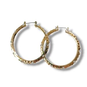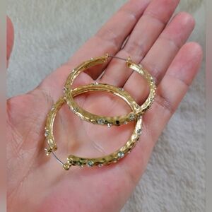 NWOT Elegant Crystal Accented Gold Tone Hammered Hoop Earrings
