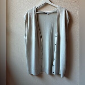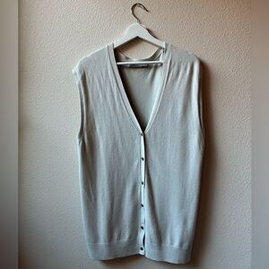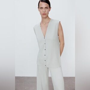 Chic sleeveless vest with button detail. Ideal for versatile wear. Stretchy material