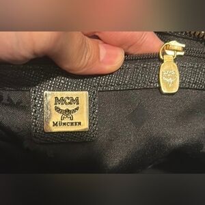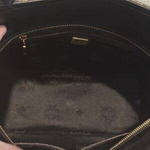 The exterior of the bag features the iconic MCM logo, which is embossed on the front.