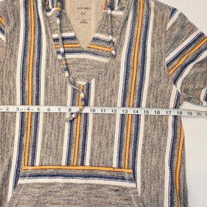 Beautiful pre-owned condition Depart West men's lightweight hoodie in size medium. Definitely can be unisex. Gorgeous grey with multicolored stripes. Perfect for any time of year. Please see pictures for measurements and condition.