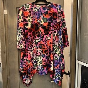 Elevate your wardrobe with this vibrant multicolor leopard print tunic. Perfect for adding a bold touch to any outfit. Measures 30” pit to pit. Stretchy knit. Brand Tag is missing off neck