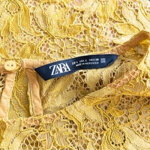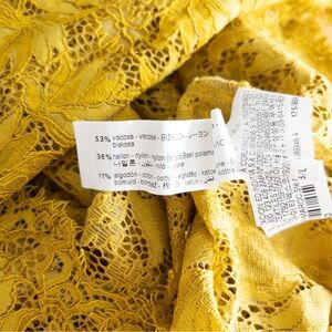 Zara Mustard Yellow Floral Lace Sheer Blouse Size Large