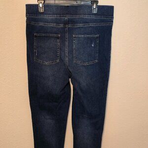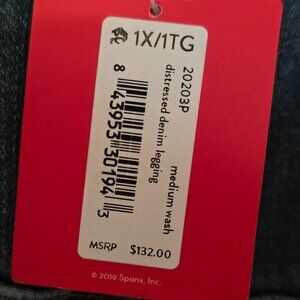 These beautiful Spanx women's leggings are new with tags in size XL. They are distressed denim leggings with an elastic waist. Back pockets are functional but have non-functional fly and front pockets. Please see pictures for measurements and condition.