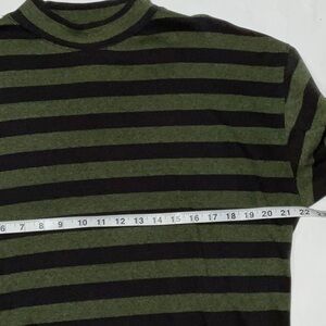 A nice long sleeve, thick t-shirt material. Tag is so hard to read but the fabric is Polyester/Cotton blend. Care instructions: Machine Wash Cold. Lay Flat to Dry.