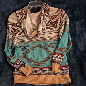 Stylish OP hoodie with Aztec patterns. Features a comfortable hood and front pocket. Ideal for everyday wear. MEASUREMENTS ARE BELOW APPROX.