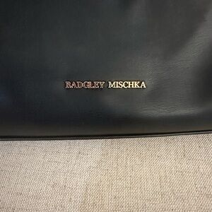 This Badgley Mischka tote is a must-have for any fashion-forward woman. The black vegan leather exterior features a snake skin print, adding a touch of elegance to the bag. The tote has double handles and a snap closure, making it both stylish and functional. Comes with longer straps!