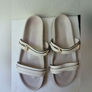Step into comfort with these elegant cream slide sandals. Perfect for casual outings, these sandals offer both style and ease.