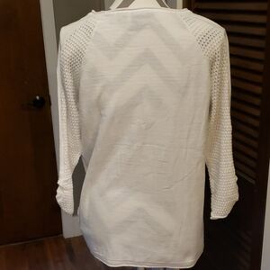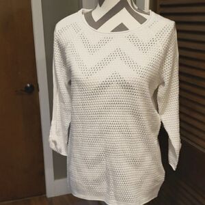 Tribal White Pointelle Sweater Size Medium