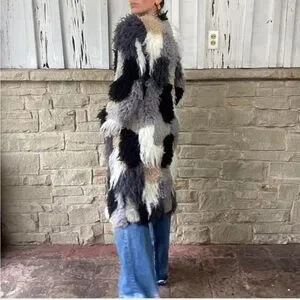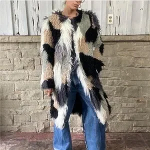 Multicolor patchwork shaggy faux fur coat shearling duster jacket