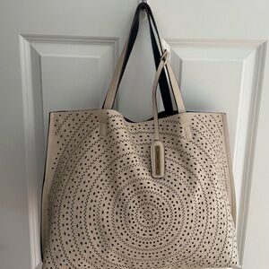Chic beige tote with circular perforations. Spacious and versatile for everyday use. NWOT, flawless
