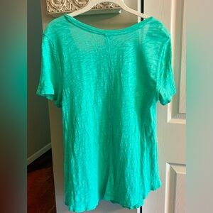 Experience the perfect blend of style and comfort with this Sundance fitted t-shirt. Crafted in a vibrant green hue, it features short sleeves and a flattering fitted silhouette, making it an essential addition to your casual wardrobe. Very good condition. Measurements are approximate.