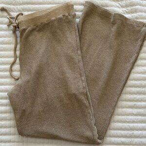NWT, Monrow Women’s Wide Leg Mesh Lounge Crop High Rise Pants in Tan, Medium
