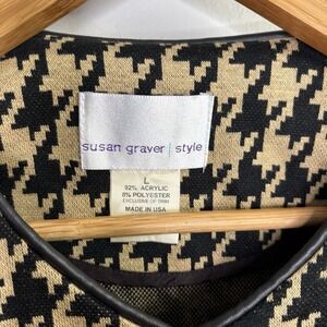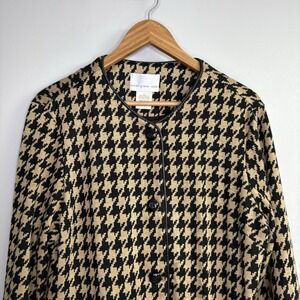 Susan Graver Womens Blazer Jacket Large Beige Black Houndstooth Button Mature