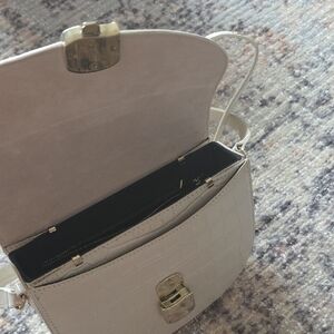 This stylish cream crossbody bag features a chic croc-embossed design. Perfect for any occasion, it adds a touch of elegance to your outfit.