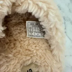Experience ultimate comfort with UGG's cream fuzzy slippers. Ideal for relaxation and casual wear.