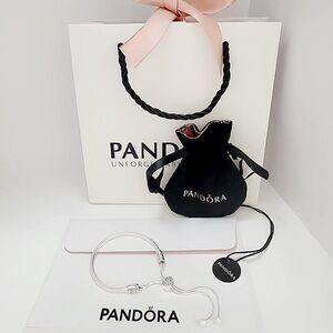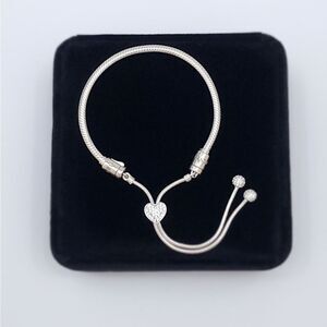 Pandora Moments Pave Heart Adjustable Chain Slider Bracelet