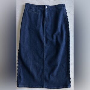 This elegant blue denim skirt is perfect for any occasion. Its classic design offers a timeless look.