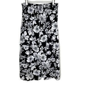 Old Navy Black Floral Linen-Blend Maxi Skirt, Size Large