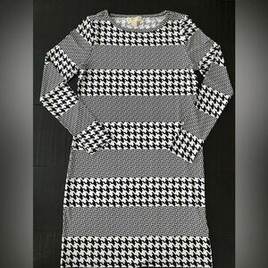 Michael Kors Navy Blue and White Houndstooth Dress
