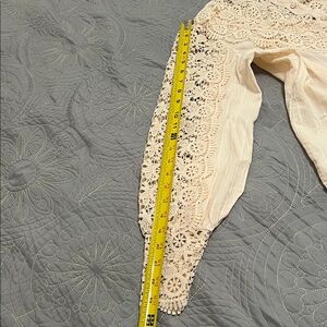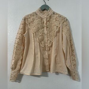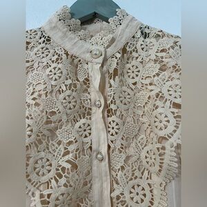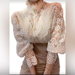 Elevate your style with this elegant lace blouse in a soft cream hue. Perfect for any occasion.