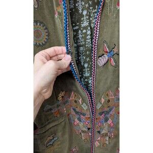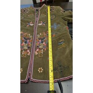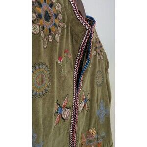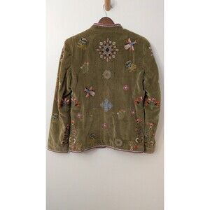 Zara Embroidered Velvet Jacket S Floral Boho Indie Retro Hippie Art Olive Green