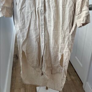 Emerson Fry Midi 100% Linen Shirtdress Button Down in Beige Almond XS $248