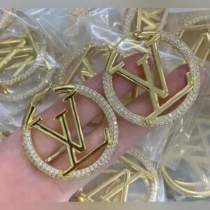 Elegant gold plated 3cm hoop earrings with LV Logo design.(GREAT SIZE NOT HEAVY)